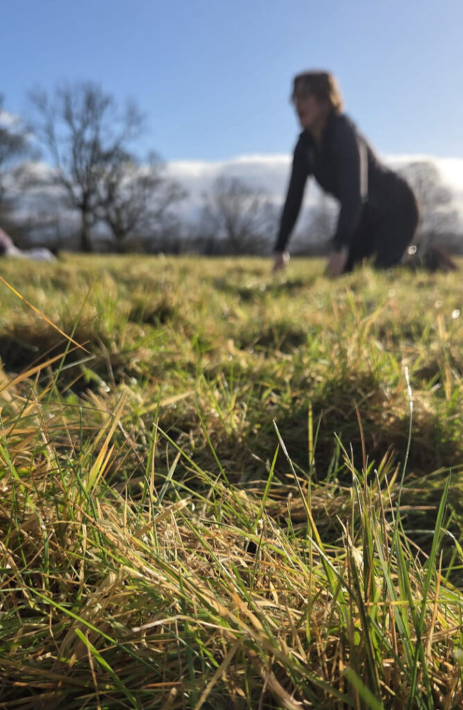 We will move with what’s naturally found in the space plus some added kit that I bring along – this could be tree roots, fallen trees, rocks, benches, hills, ditches, kettlebells, sticks, weighted bags, balls and more!