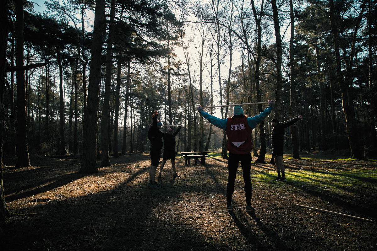 Doing so in a natural environment boosts its impact as we remove the artificial light of gyms, as well as the smooth bars, rigid exercise machines and flat surfaces. Outside, we move with varied terrain, texture, gradient – and weather! – to provide a whole-body stimulus.